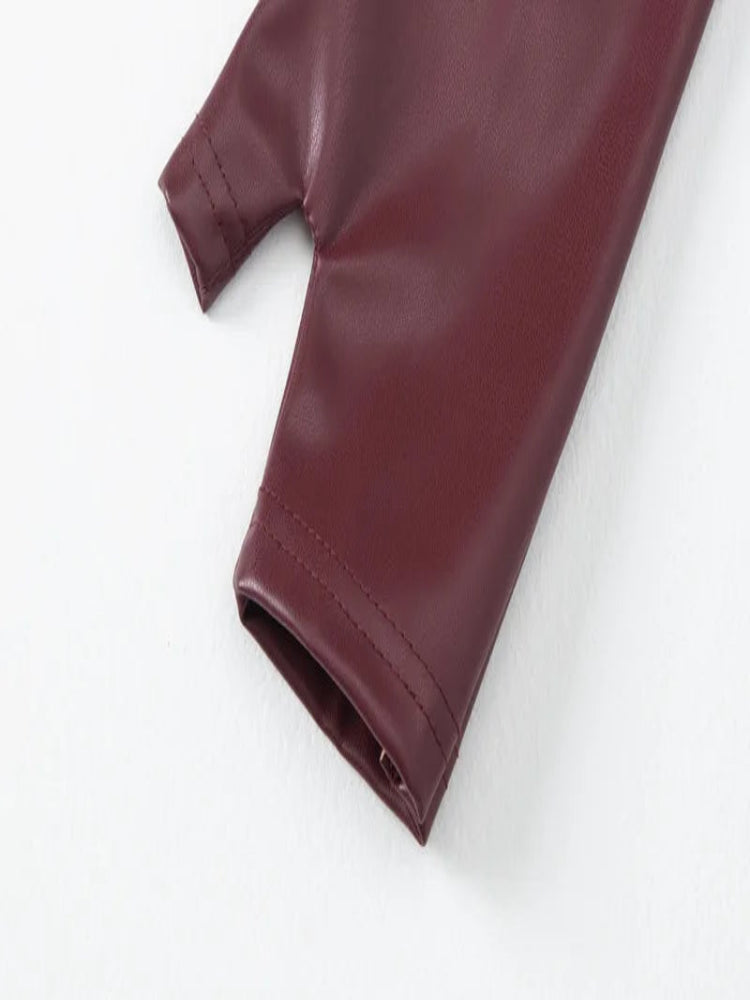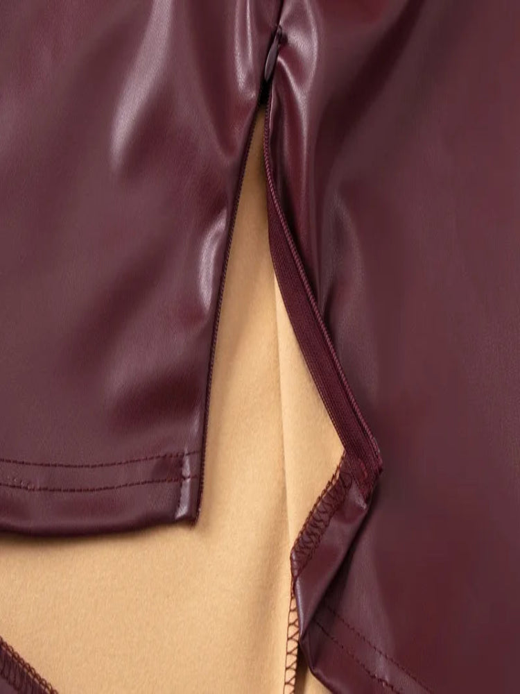 Crafted from high-quality PU blend fabric, this top offers a structured fit without stretch, maintaining its sharp, stylish silhouette. Pair it with jeans, skirts, or tailored pants for a versatile look that stands out all year round.